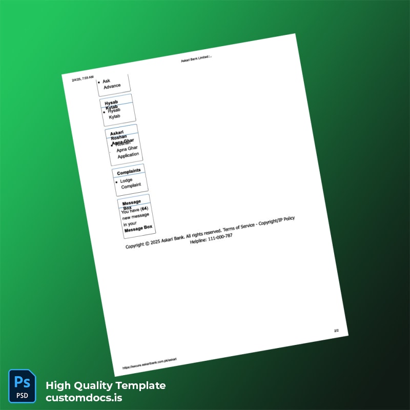 Askari Bank Editable Utility Bill Template in Word and PDF formats 2 page
