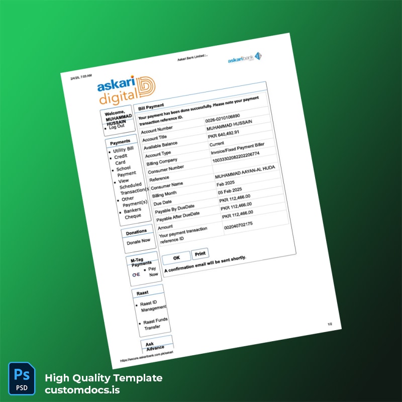 Be the first to review “Askari Bank Editable Utility Bill Template in Word and PDF formats 2 page”