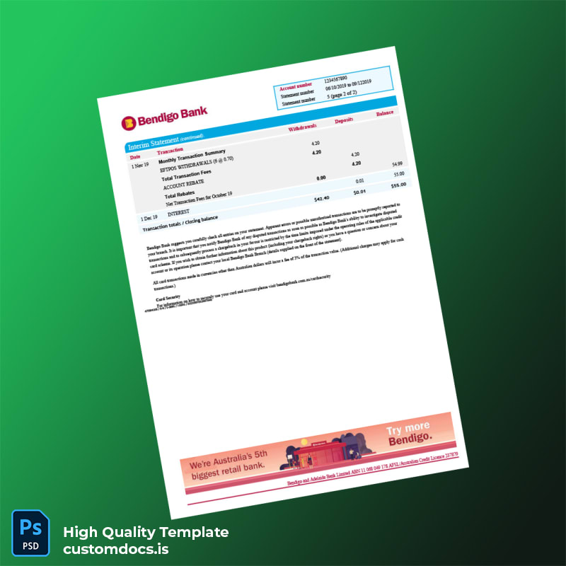 Empower your professional image with our reliable Australia Bendigo Bank Statement Template. Ready to take action? Download your editable bank statement template today and transform how you manage your financial records. Visit MR Verify for more insights.