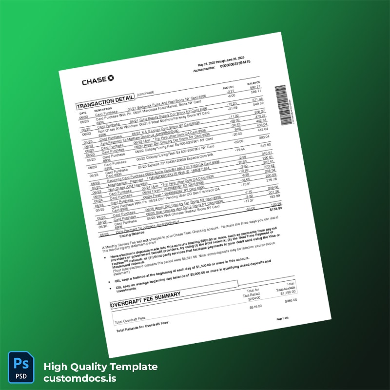 Bank Statement 3 Template in Word and PDF formats 8 page