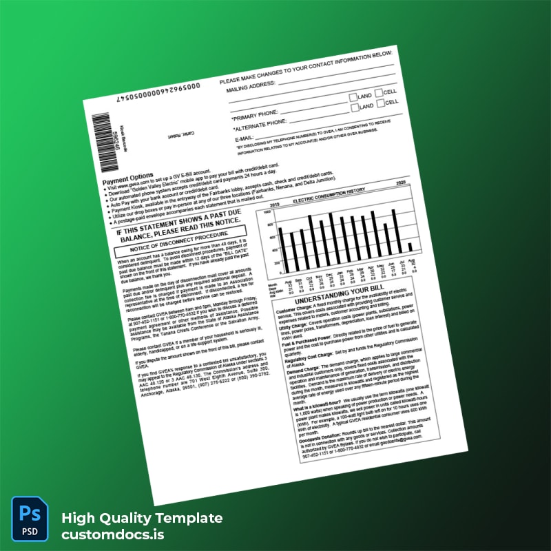 Belgium Golden Valley Electric Association Editable Electricity Bill Template