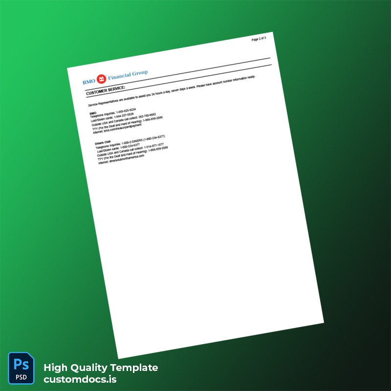Elevate your professional documentation with the Canada BMO Bank Statement Template, available in both Word and PDF formats. Designed for quick customization and reliability, this template is your go-to solution for all your bank statement needs.