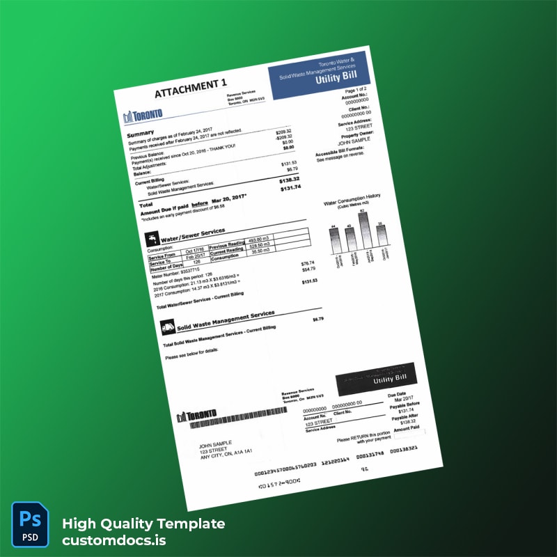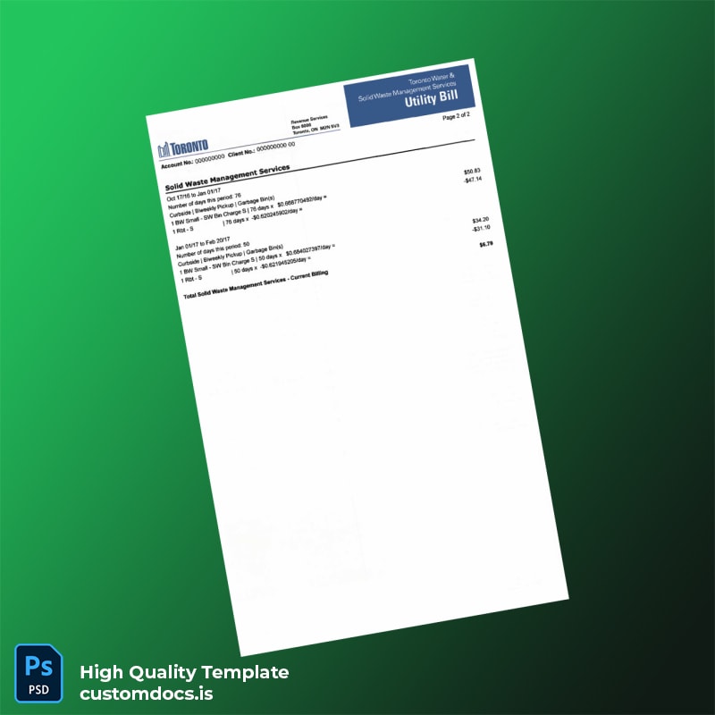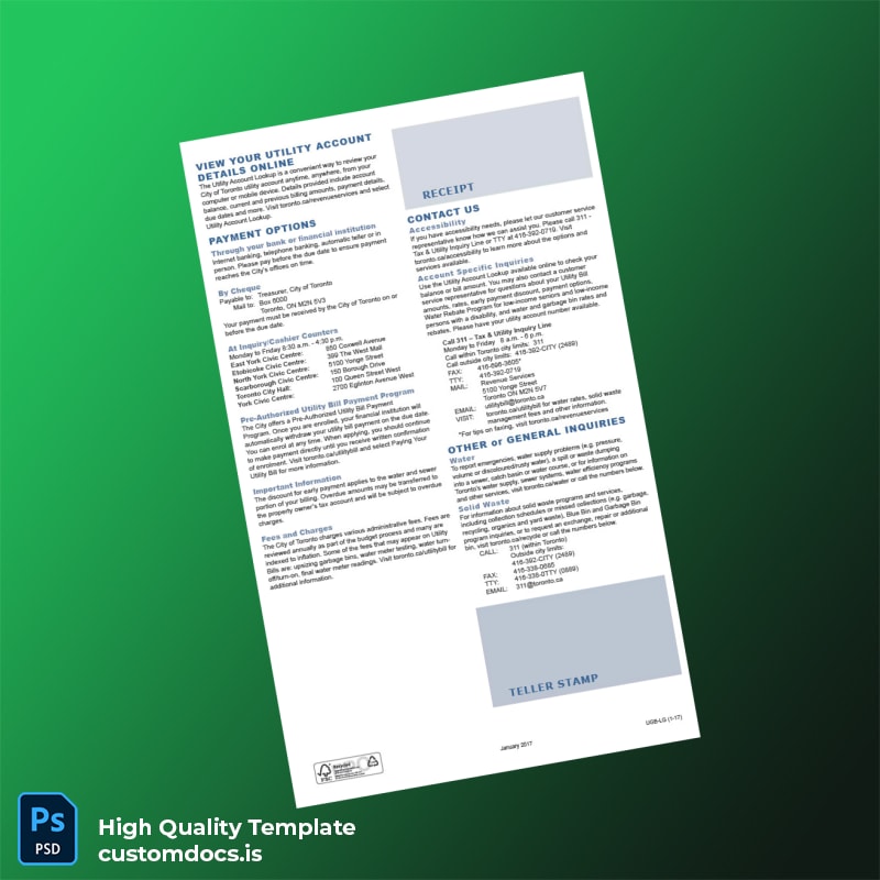 Canada City Of Toronto Editable Utility Bill Template in Word and PDF Formats