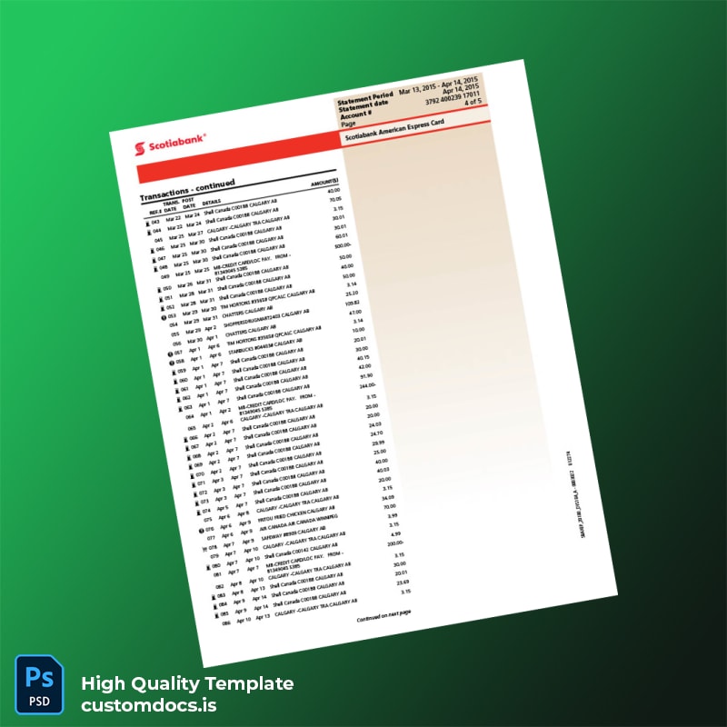 Don’t let missing documents hinder your professional image. Download the Canada Scotiabank Credit Card Statement Template today for a smooth, hassle-free experience. Boost your credibility and make a lasting impression with concise and well-designed documents. Explore more editable options by visiting bank statement templates and enhance your documentation skills!