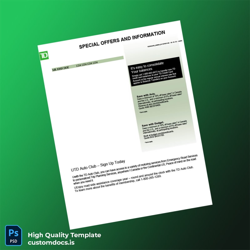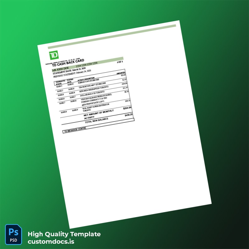 Canada TD Bank Credit Card Statement Template
