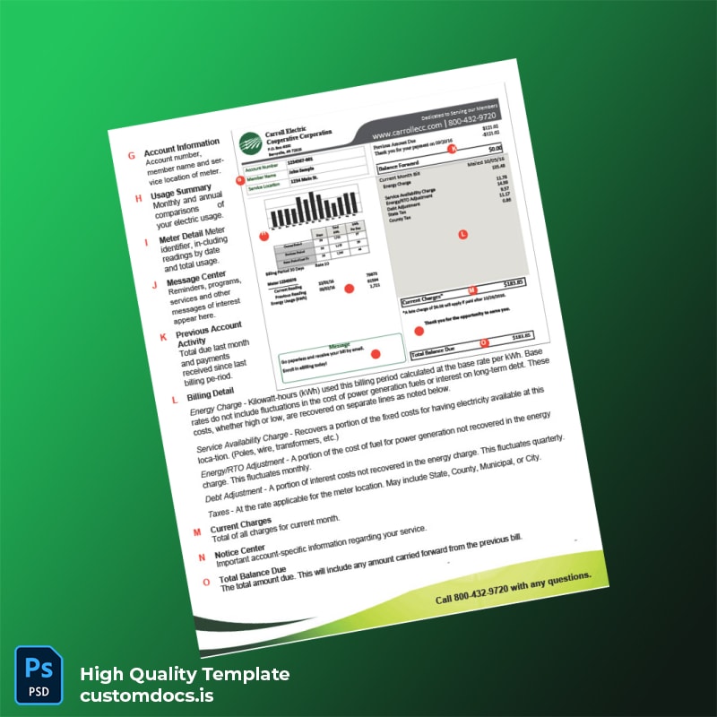 Carroll Electric Cooperative Corporation Editable Electricity Bill Template – Your Reliable Utility Bill Solution