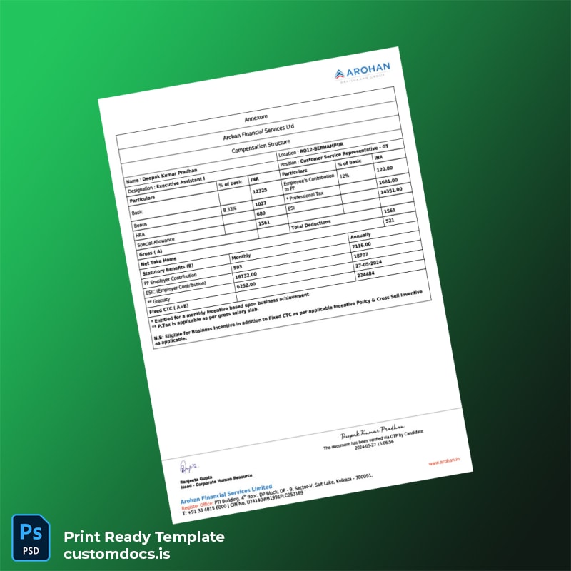 Streamline Your Employment Verification with the Arohan Financial Services Limited Template