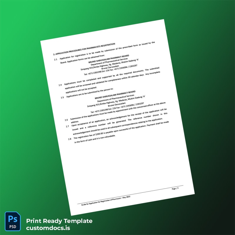 Custom Brunei Darussalam Pharmacy Board Registration Certificate Template – Word & PDF 6 page