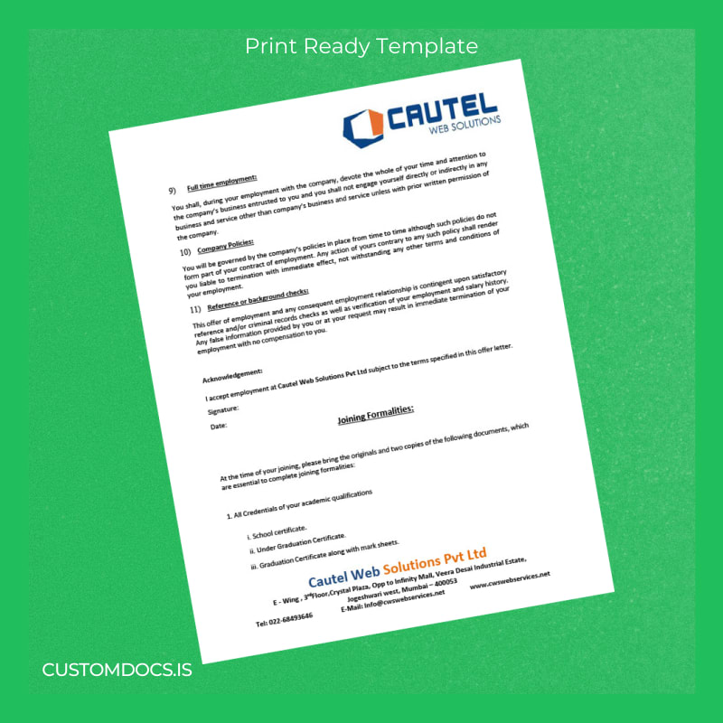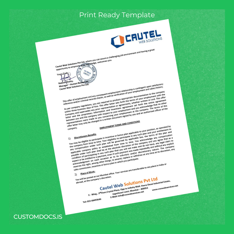 Effortlessly create professional and accurate employment verification documents using the Cautel Web Solutions Pvt Ltd Employment Verification Letter Template. Designed for HR professionals, recruiters, and business administrators worldwide, this editable Word and PDF template simplifies the certification of employment details with precision and ease.