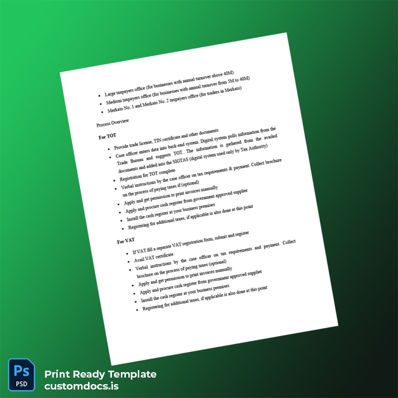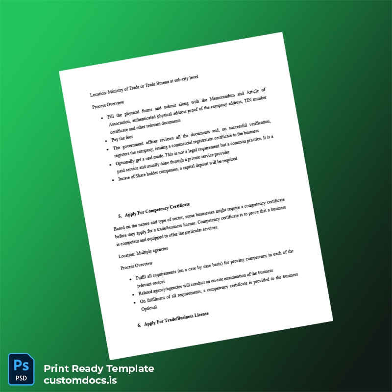 Don’t let registration document hurdles slow your progress. Invest in this editable and customizable Ethiopia Ministry of Commerce Business Registration Certificate template in Word and PDF formats to ensure your business documentation is always accurate, compliant, and professionally presented. Order now for immediate digital delivery and simplify your registration needs with confidence!