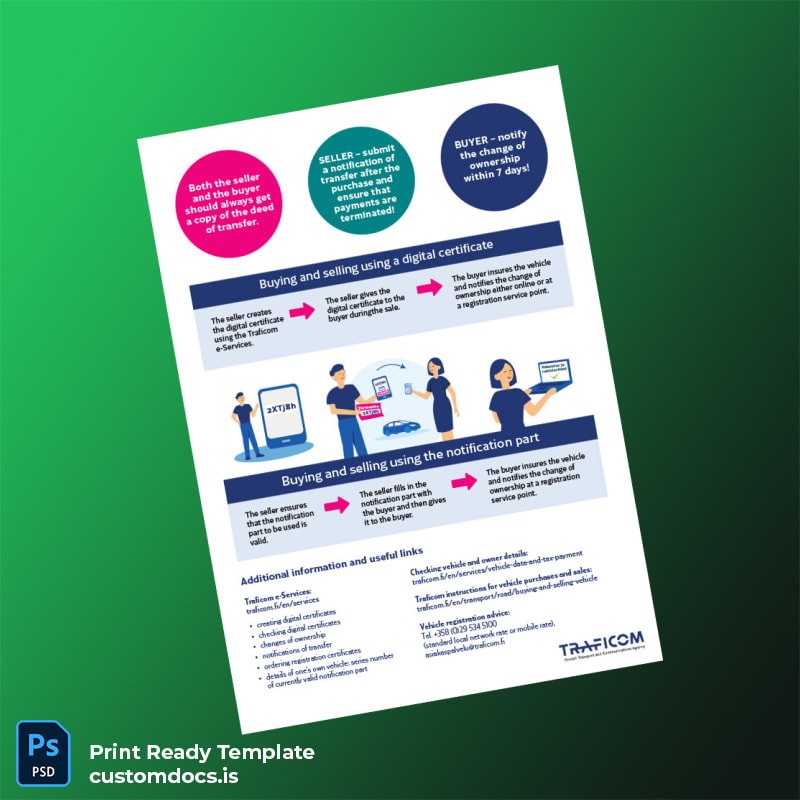 Don’t let paperwork delays disrupt your operations. Choose the Custom Finland Traficom Vehicle Registration Certificate Word and PDF Template for an editable, customizable, and immediate solution. Secure your professional advantage by downloading today and ensure compliance with confidence.