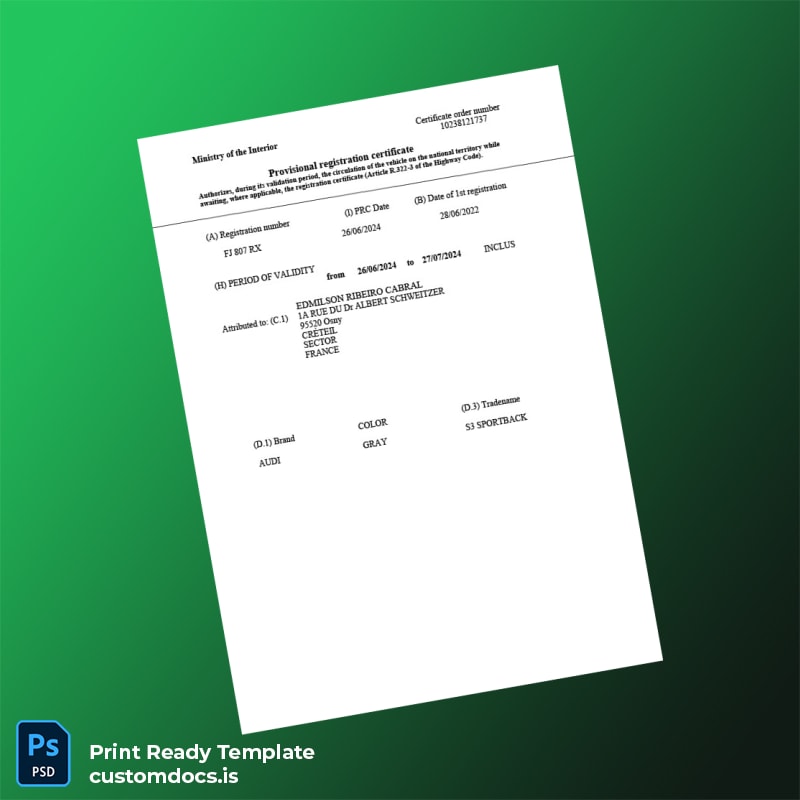 Streamline Your Business Registration with the France Provisional Registration Certificate Template
