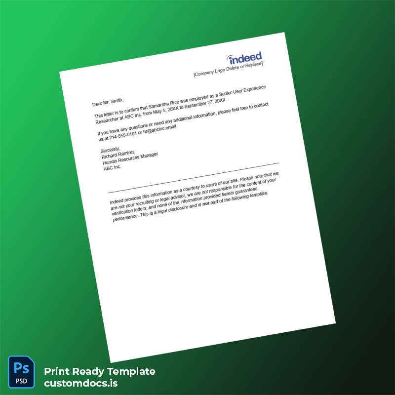 Struggling to provide quick, professional proof of your employment status? Our Indeed Employment Verification Letter Template – Word & PDF brings you a seamless way to create accurate and editable documentation that meets all your verification needs efficiently.