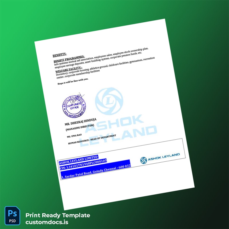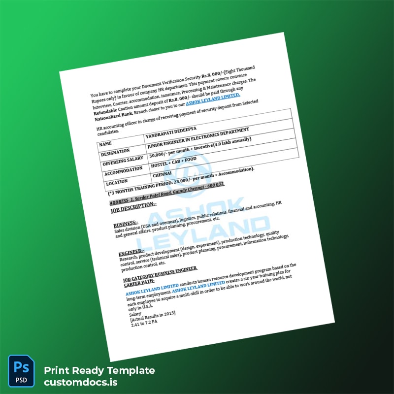 Don’t let outdated or incomplete employment letters hamper your verification process. Invest in this customizable India Ashok Leyland Limited Employment Confirmation Letter Template in Word and PDF to deliver prompt, polished, and compliant employment proof. Elevate your documentation standards now—purchase and download instantly for immediate use.