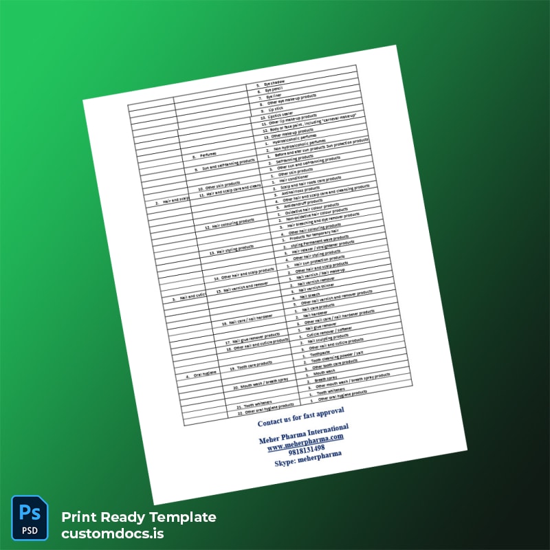 Whether dealing with urgent certificate renewals, replacements due to document loss or theft, or creating consistent documentation across multiple cosmetic product lines, this template delivers a reliable solution. It addresses common pain points by offering accurate, editable document structures that reduce errors, save time, and limit procedural delays. This facilitates smoother collaborations with regulatory bodies, customs officials, and business partners.