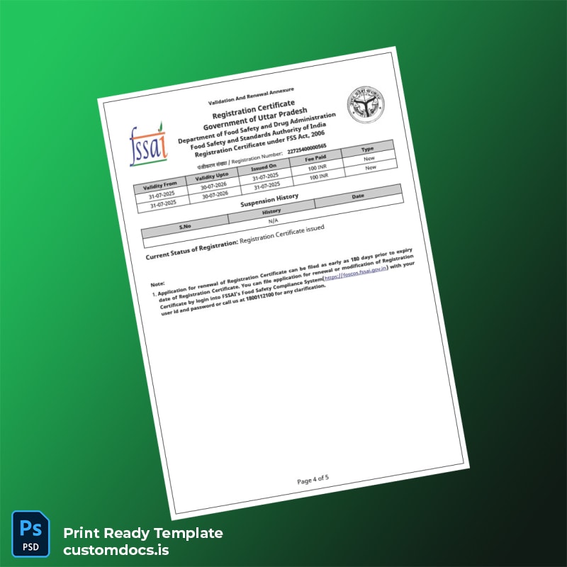 Seize the opportunity to produce a flawless and customizable registration certificate without the frustration of starting from scratch or waiting weeks for official copies. Our template empowers you to maintain business continuity and exhibit professionalism effortlessly. Download the Custom India Government of Uttar Pradesh Registration Certificate Word and PDF Template now and complete your documentation with confidence.