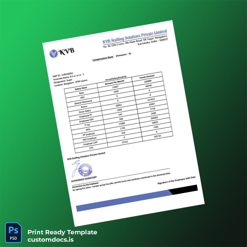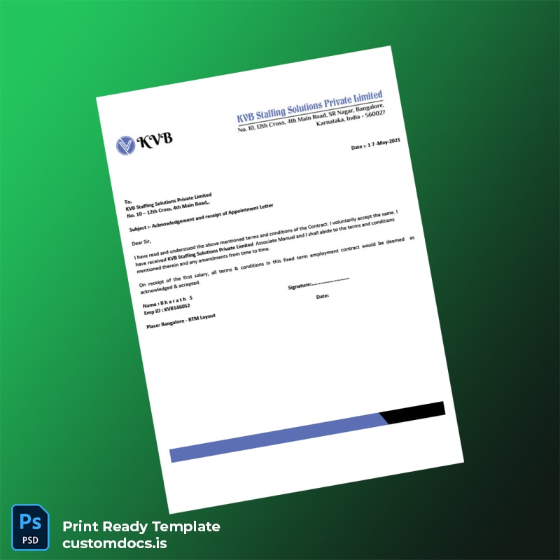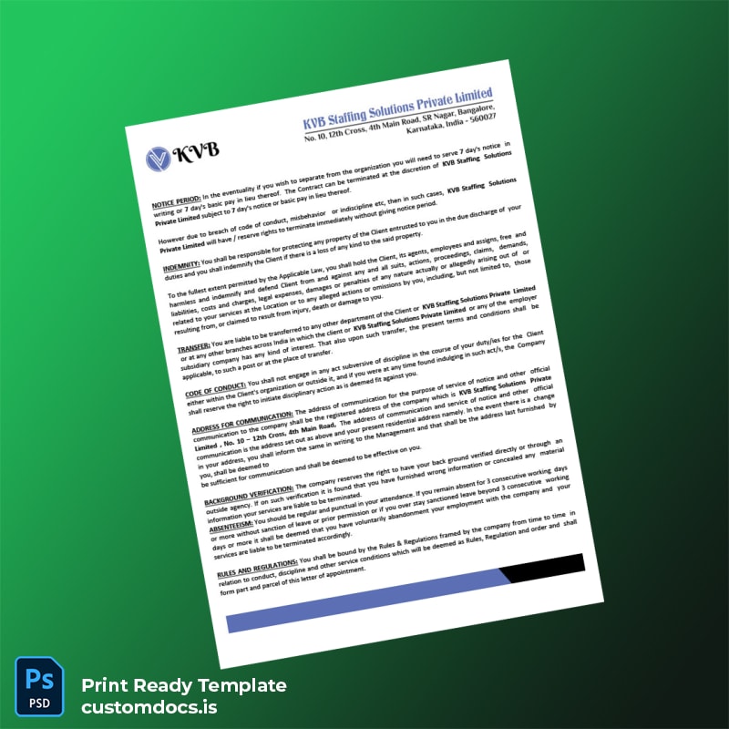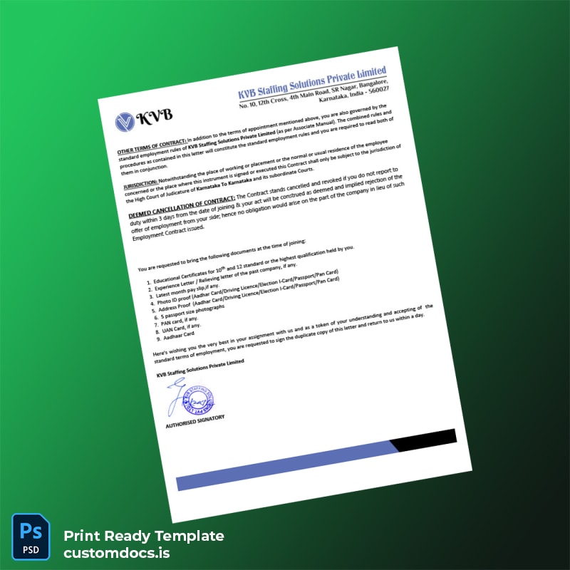 Effortlessly Verify Employment with a Customizable India KVB Staffing Solutions Letter