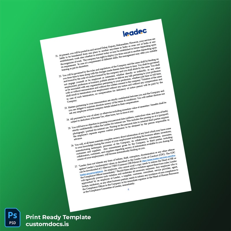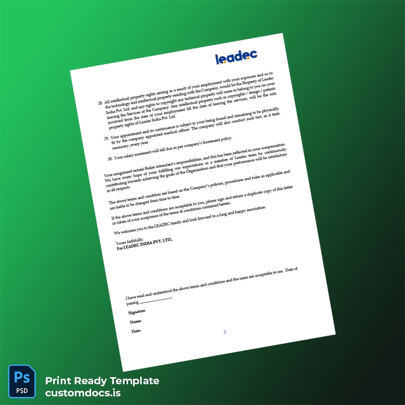 Custom India Leadec India Pvt Ltd Employment Verification Letter Template – Word & PDF 6 page