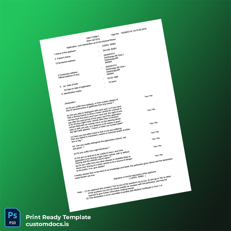 Imagine a busy professional who misplaced their original learner’s licence documents and needed an immediate replacement. Utilizing this editable registration certificate template, they quickly updated personal information and submitted verified documents within minutes, avoiding unnecessary delays and penalties.