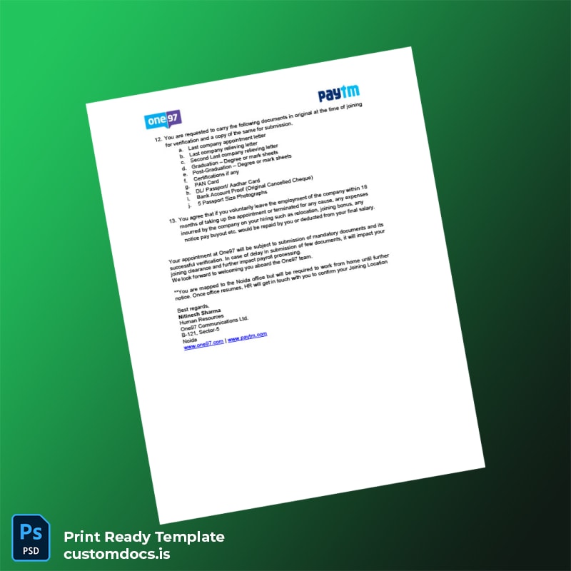 Whether you are updating existing records or creating new verifications, this comprehensive and customizable solution transforms a tedious task into a quick, professional process. Download the India One97 Communications Ltd Employment Verification Letter Template now and deliver trusted employment evidence with confidence and ease.