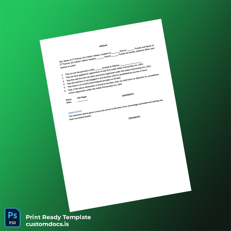 Discover the ultimate solution for your business documentation needs with our India Partnership Firm Registration Certificate Template available in both Word and PDF formats. Crafted specifically for professionals who require a reliable and editable certificate of business registration, this template ensures your official documents are perfectly formatted and customizable to your business details.