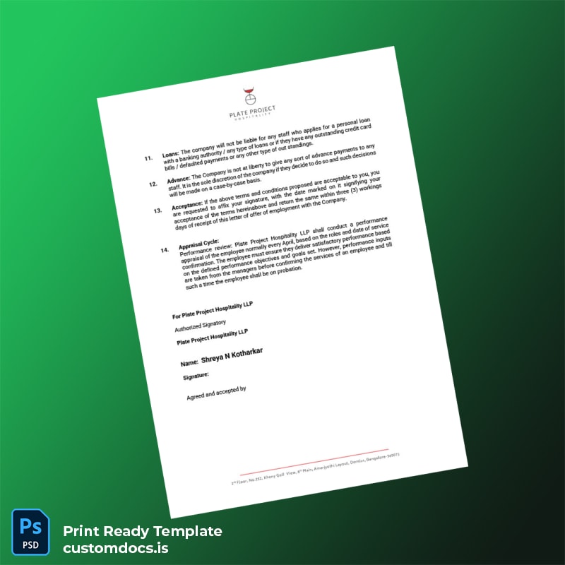 Enhance your HR documentation workflow with the India Plate Project Hospitality Employment Verification Letter Template. Invest in this editable and customizable Word and PDF template now to produce polished, accurate, and professional employment verification letters instantly. Experience seamless editing and instant downloads that support your operational efficiency.