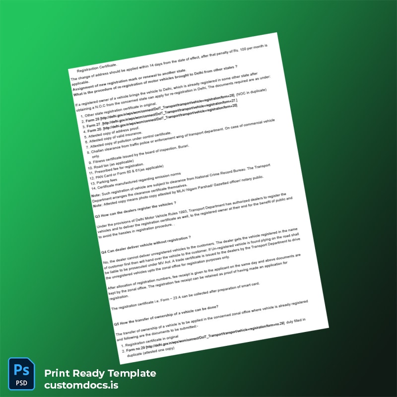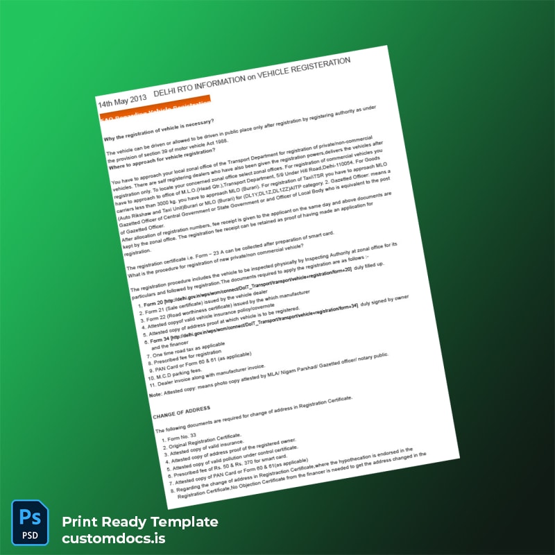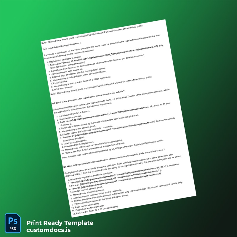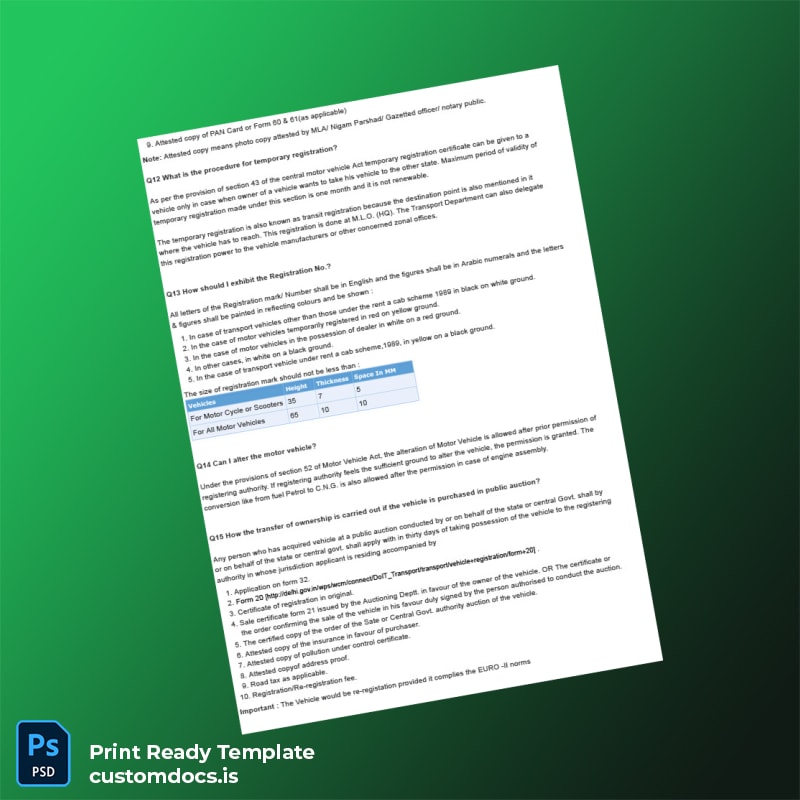 Efficiently Manage Your Vehicle Registration with Our Editable India RTO Document Template
