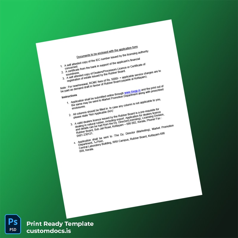 Streamline Your Business Registration with the India Rubber Board RCMC Registration Certificate Template