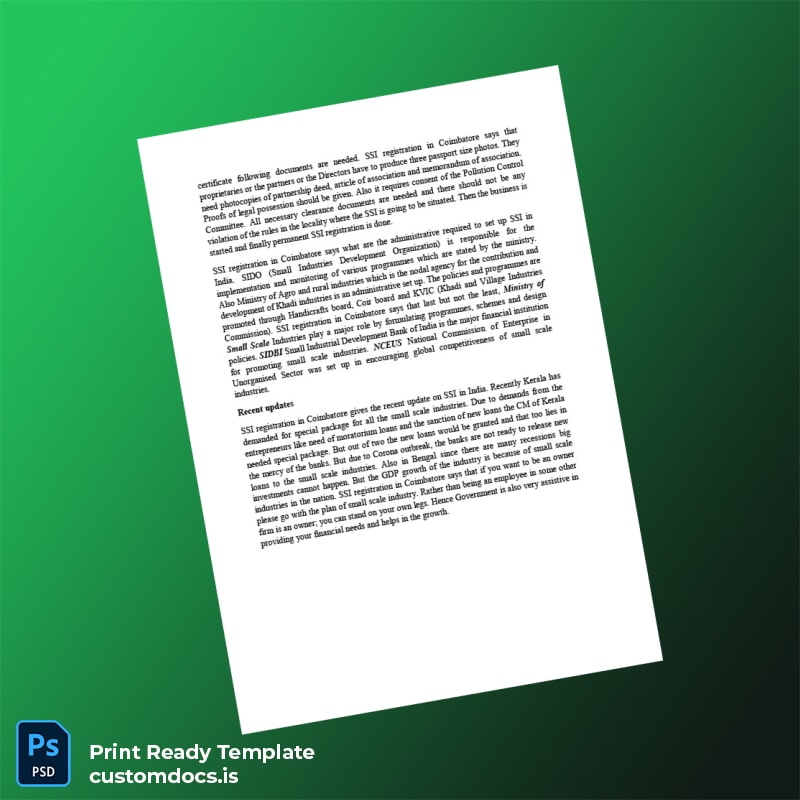 Custom India SSI Registration Certificate Template – Word & PDF