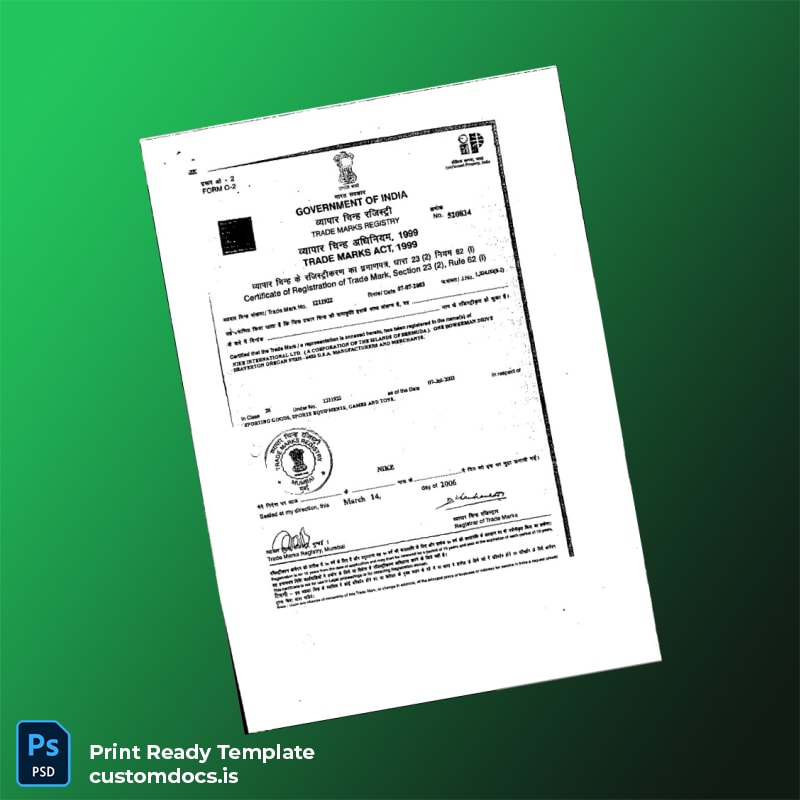 Fully loaded with the required fonts and official design elements, the template ensures compliance with India Trade Marks Registry standards while simplifying your customization process.