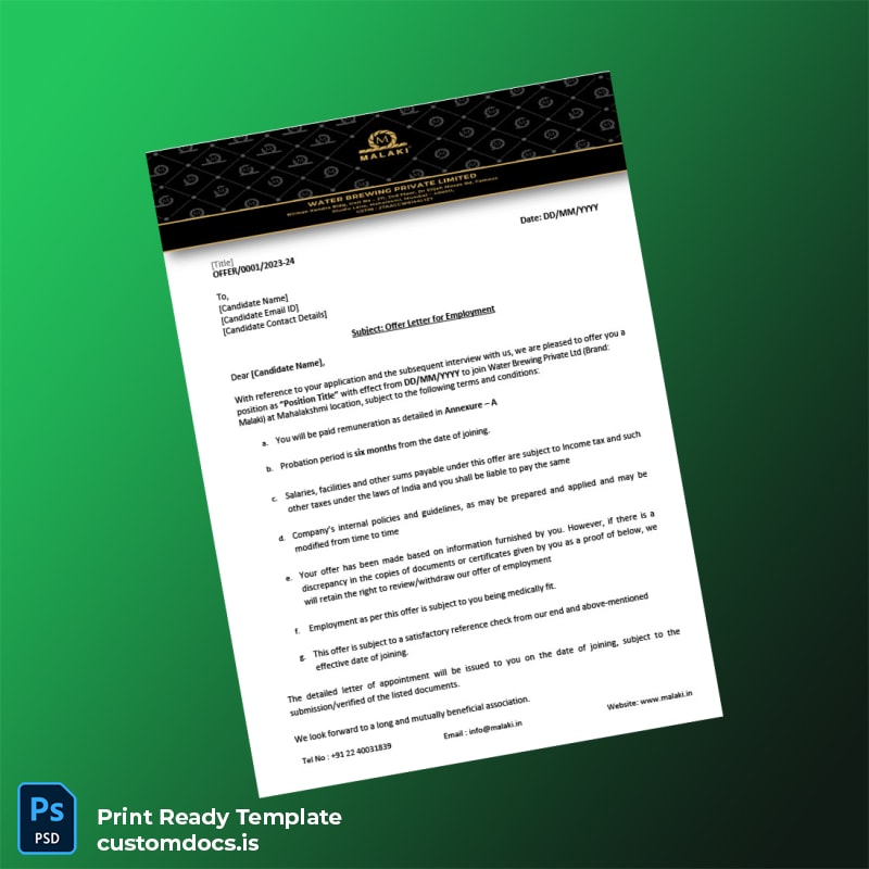 Don’t let employment verification requests slow down your workflow. Invest in this editable and customizable India Water Brewing Private Limited Employment Verification Letter Template today and experience the benefits of hassle-free documentation. Download now and create professional, accurate proof of employment letters in minutes.