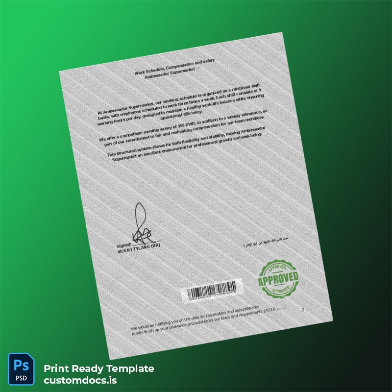 Reliable Employment Verification with Kuwait Ambassador Supermarket Template
