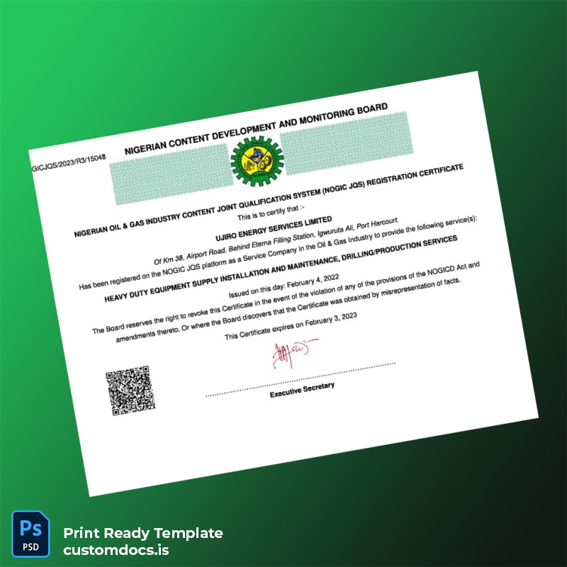 Streamline Your Business Registration with the Nigeria NOGIC JQS Registration Certificate Template