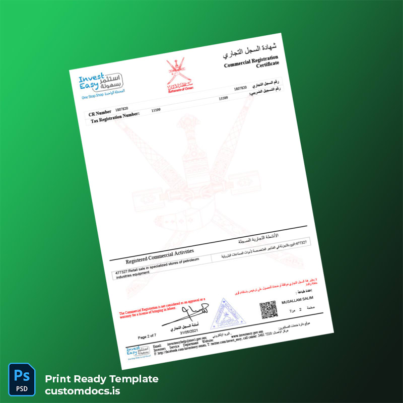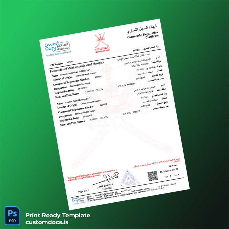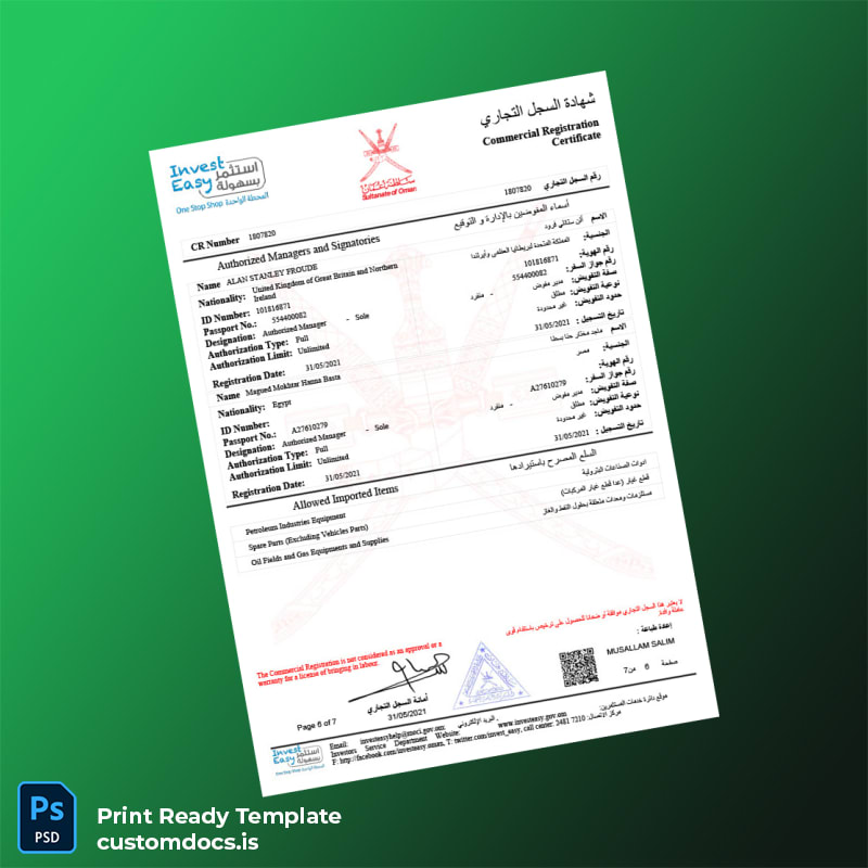 Streamline Your Business Registration with the Oman Ministry of Commerce Certificate Template