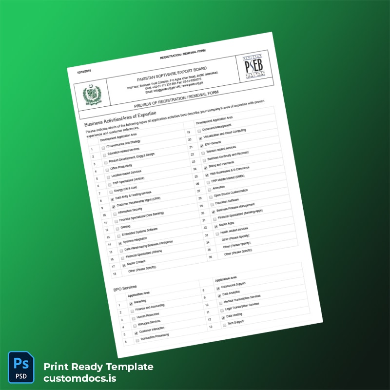 Streamline Your Business Registration Renewal with the Custom Pakistan PSEB Registration Renewal Form Template