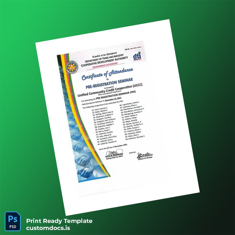 Streamline Your Business Setup with Our Editable Philippines Cooperative Development Authority Pre Registration Certificate Template