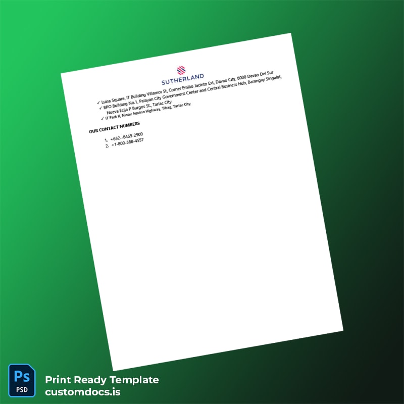 Don’t let employment verification hold you back—equip yourself with a reliable, customizable template that transforms cumbersome paperwork into a swift process. Take control of your documentation needs with the Philippines Sutherland Global Services Employment Verification Letter Template in Word and PDF formats. Secure your copy today and convey professionalism with every letter sent.
