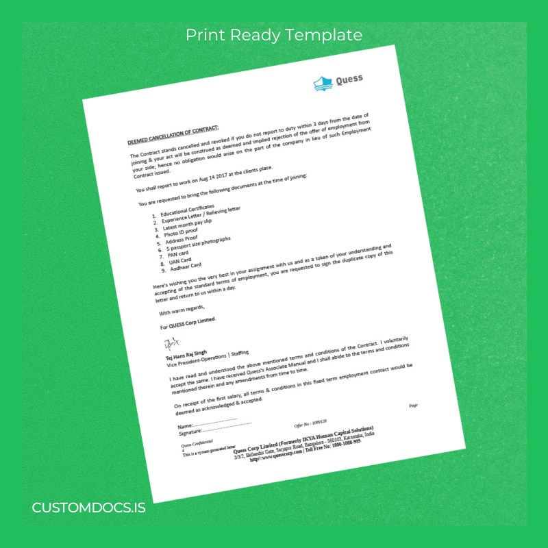 Streamline Your Employment Verification Process with the Quess Corp Limited Employment Verification Letter Template