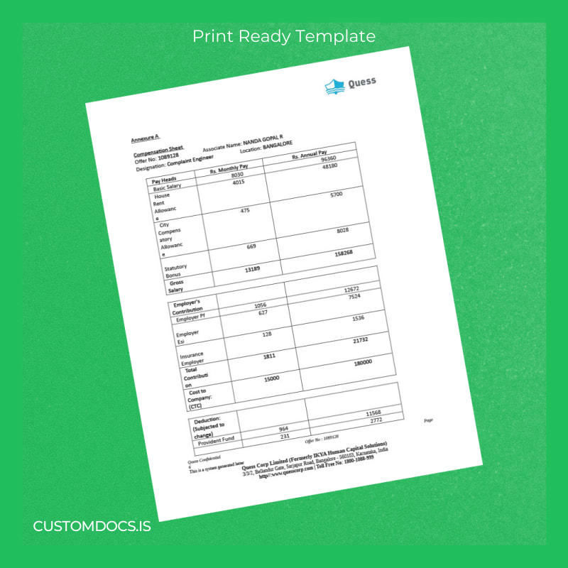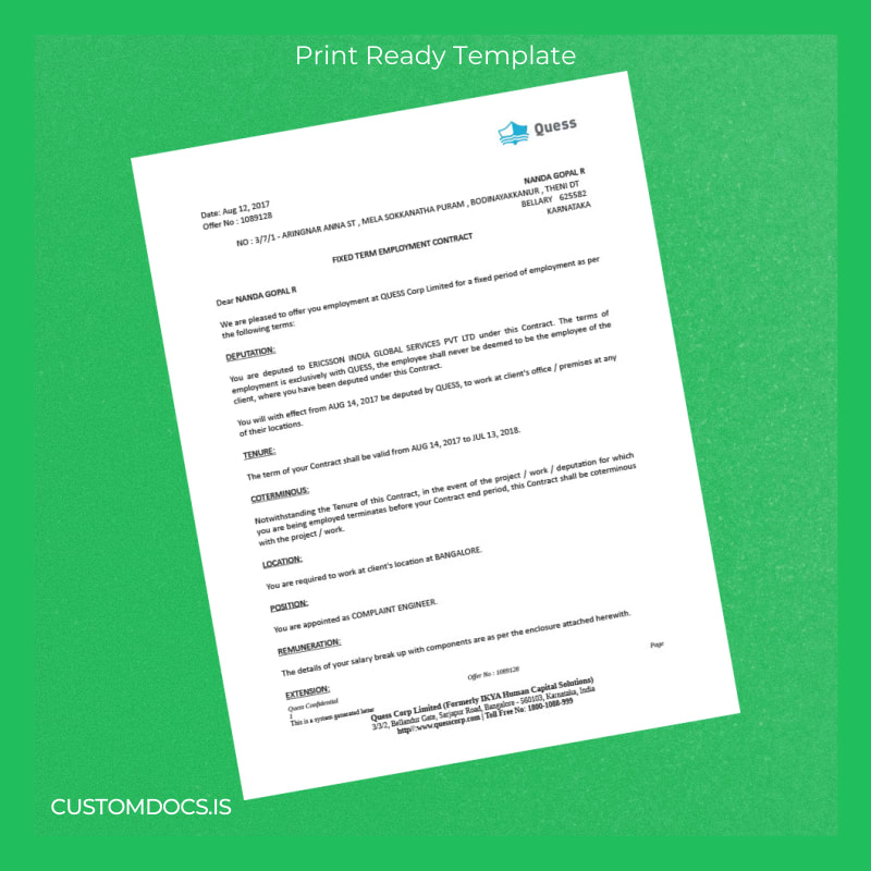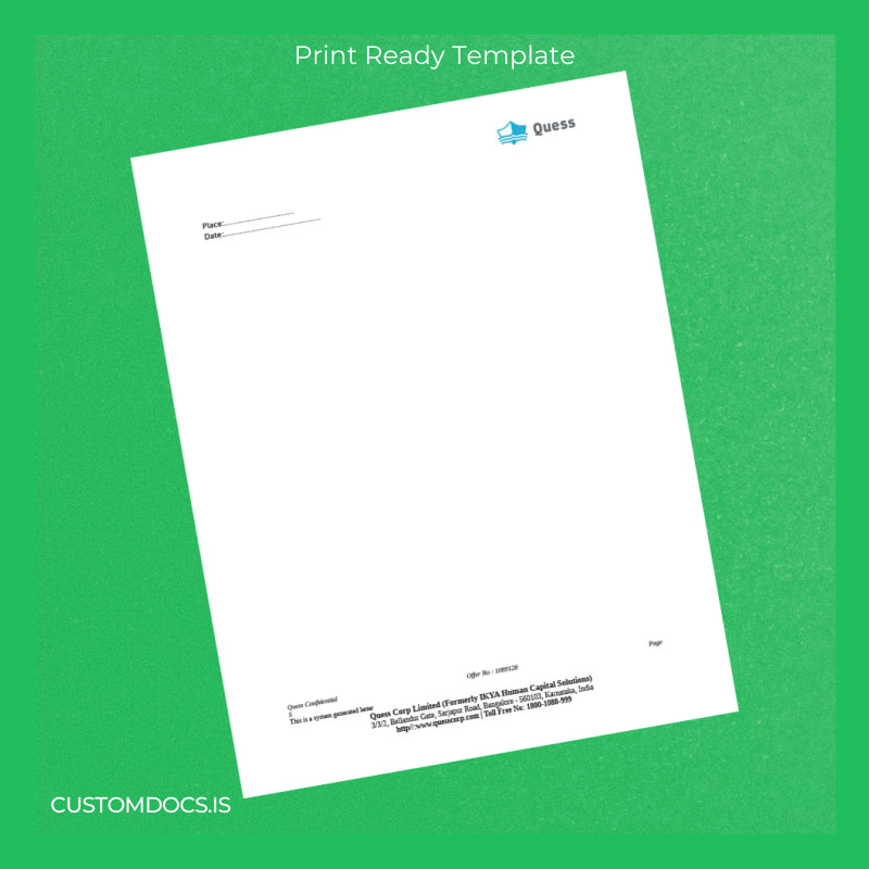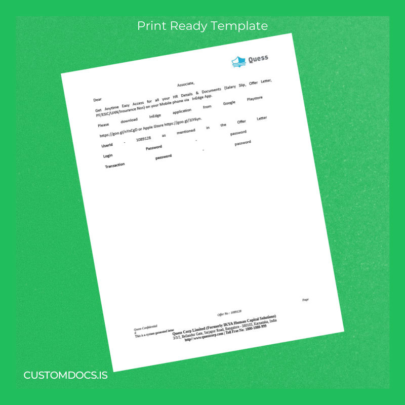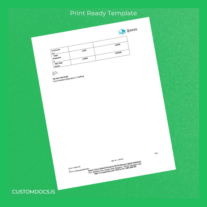 Don’t let employment verification slow your workflow. With the Quess Corp Limited Employment Verification Letter Template, generate polished, accurate proof of employment documents effortlessly. Purchase and download your editable, customizable template now and experience a smarter way to manage employment verification.