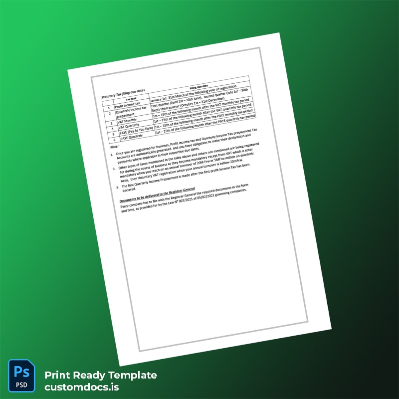 Upgrade your business paperwork with a trusted, editable registration certificate that ensures convenience, speed, and professionalism. Don’t let administrative hurdles stall your operations – download the Custom Rwanda Office of the Registrar General Registration Certificate Word and PDF Template now and take control of your business registration process with ease.