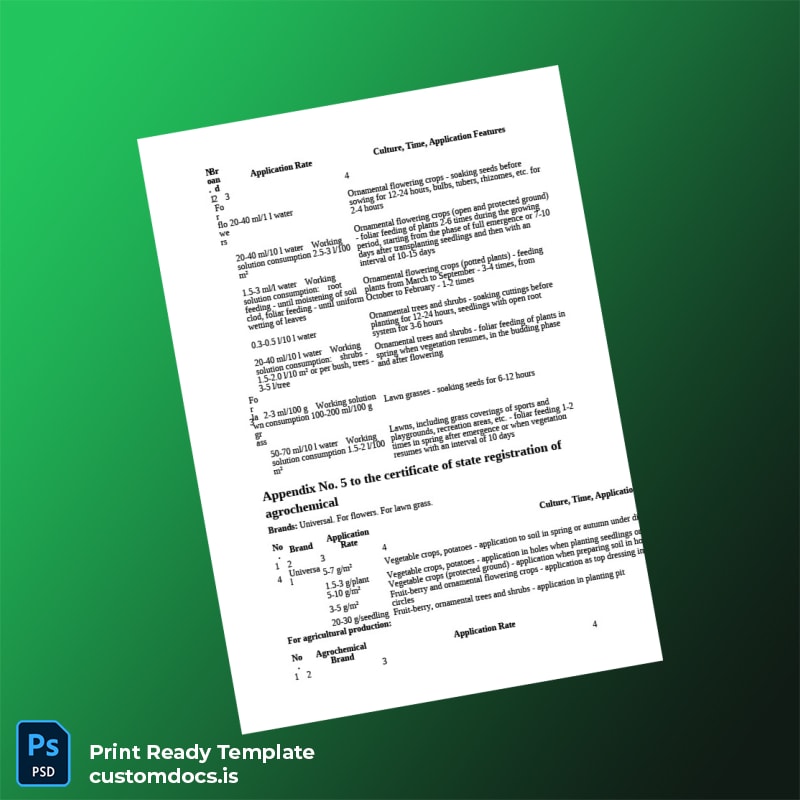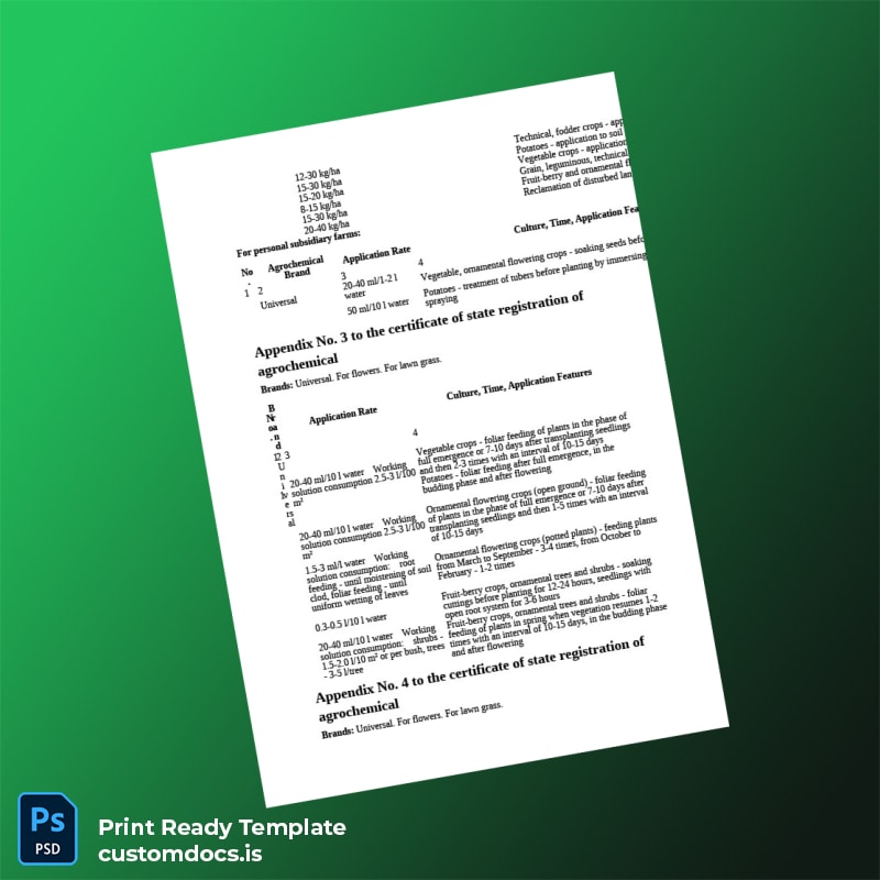 For professionals who face tight deadlines or need to replace lost or expired certificates, this custom registration certificate template is a reliable solution. Whether you are a regulatory planner, compliance officer, or business owner managing agrochemical products, this template addresses the need for fast, error-free editing without complex software.