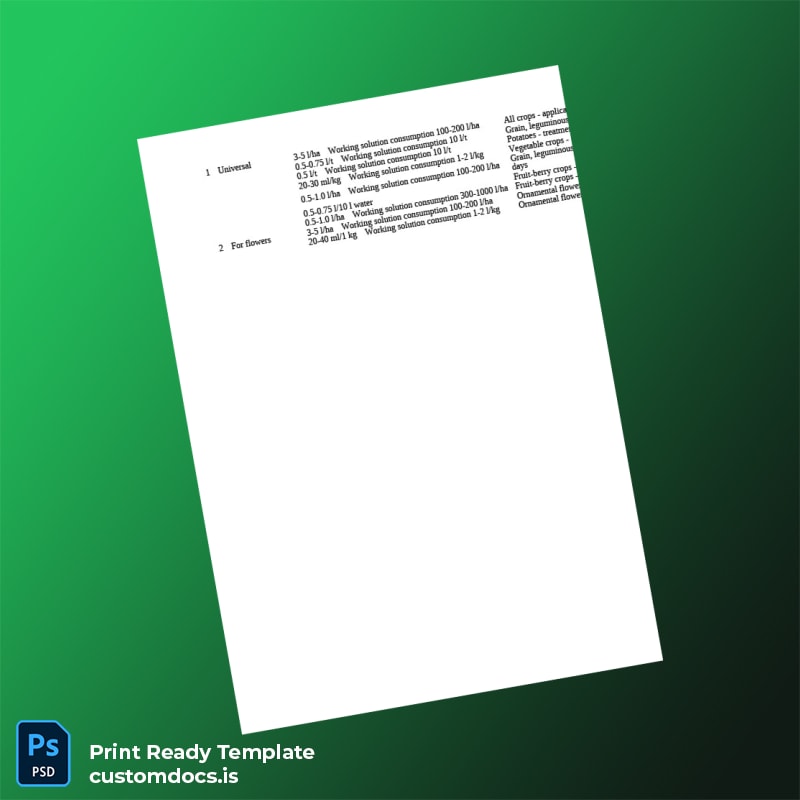 By utilizing this certificate template, you mitigate the risk of document inaccuracies and delays. It suits professionals who require a straightforward, reliable way to manage business registration certificates for Humic Acids agrochemical products. Its adaptability supports varying regulatory criteria and regional requirements, making it a versatile asset for companies globally.