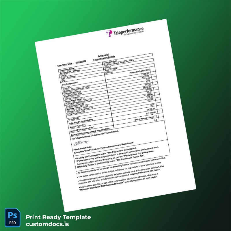 Managing employment confirmation can often be a cumbersome task, especially when documentation needs to be both professional and precise. The Teleperformance Employment Verification Letter Template in Word and PDF formats offers a seamless solution designed for HR professionals, administrative staff, and business owners who require a reliable and editable certification document. This template is ideal for those who need to provide swift proof of job status for loan applications, background checks, or internal record-keeping without the hassle of creating letters from scratch.