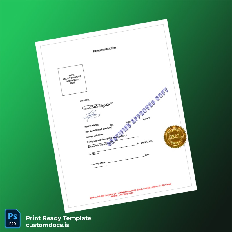 Custom UK Bodima Oil and Gas Company Employment Verification Letter Template – Word & PDF 5 page