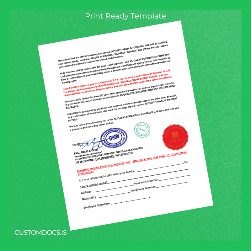 Custom United Arab Emirates Al Qabas Petroleum Company Employment Verification Letter Template – Word & PDF 5 page
