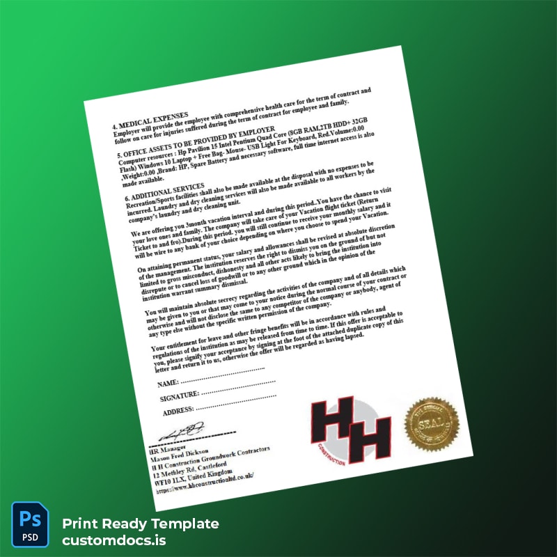Be the first to review “Custom United Kingdom H H Contractors Ltd Employment Verification Letter Template – Word & PDF 2 page”
