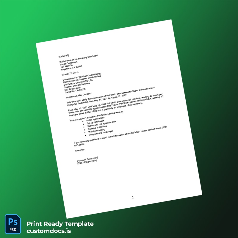 - Designed with a clean, formal layout ensuring clarity and enhancing credibility for employment verification processes.