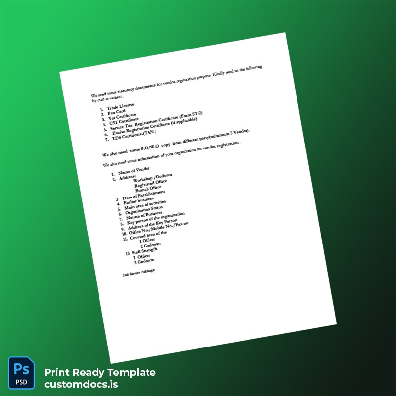 Custom Vendor Registration Certificate Word and PDF Template – editable, customizable, and professional solution for quick vendor registration documentation.