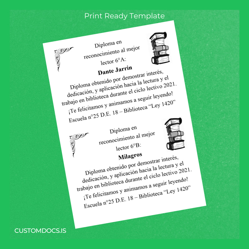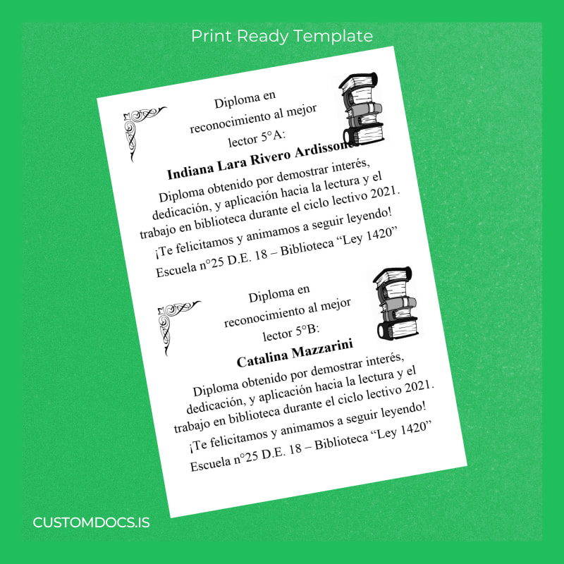 Your Solution: Argentina Escuela N°25 Diploma for Best Reader Template