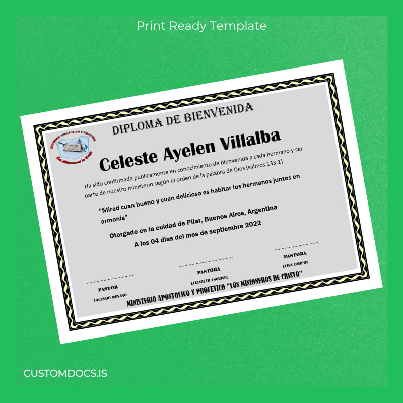 Fortunately, the customizable degree template collection offers an immediate, user-friendly solution: the Argentina Ministry Apostolic and Prophetic _The Missionaries of Christ_ Welcome Diploma Template available in Word and PDF formats. This digital diploma download allows ministers, church administrators, and mission leaders worldwide to effortlessly obtain a professional and polished replacement diploma tailored to their specific needs.